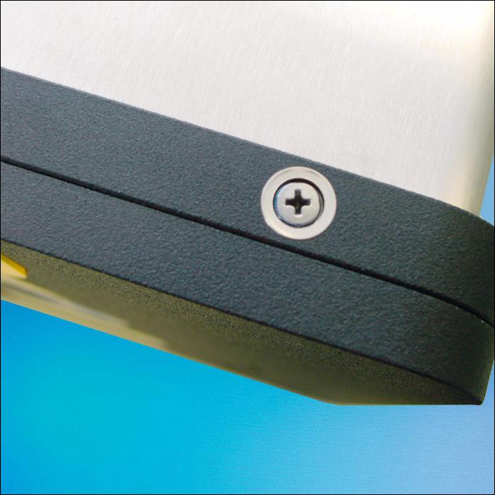 Aufgabe: Modulbauweise der Laserbaugruppen, Schaffung einer Produktfamilie, hohes Maß an Servicefreundlichkeit durch handliches entfernen der Gehäuseabdeckung, staub- und flüssigkeitsdichte Gehäusekonstruktion, Visualisierung der Gerätefunktion
