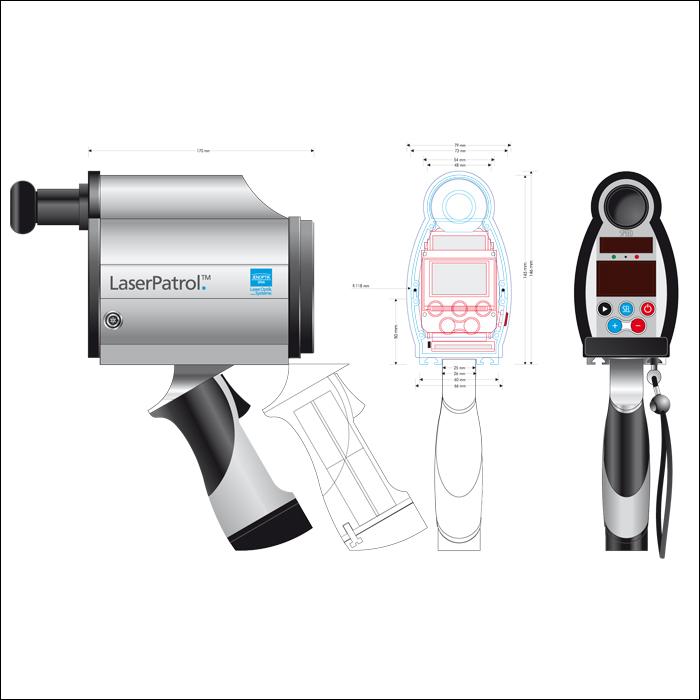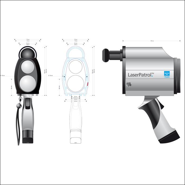 Die Laser Patrol der JENOPTIK Laser, Optik, Systeme GmbH ist ein Geschwindigkeitsmessgerät mit Systemcharakter. In 2 verschiedenen Baulängen und technischen Ausstattungen können die Geräte als Handversion oder auf Stativ genutzt werden. Der Handgriff lässt sich leicht für die Stativanwendung entfernen. Das Gehäuse ist sehr kostensparend aus 2 deckungsgleichen Aluminium Strangguss-Profilen zusammengesetzt, was dem Gerät eine außerordentliche Robustheit verleiht. Die Bedienung erfolgt über eine Folientastatur die stärksten Witterungseinflüssen stand hält.